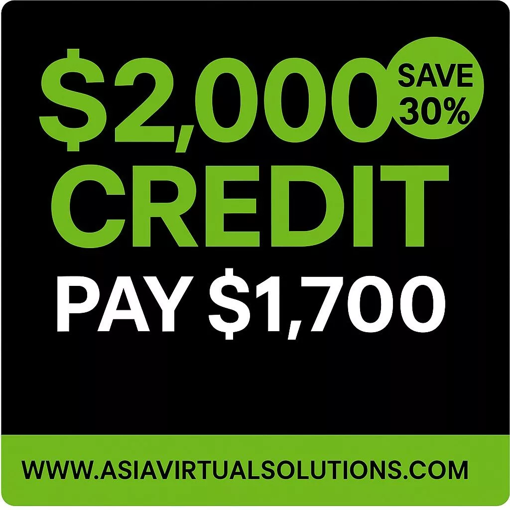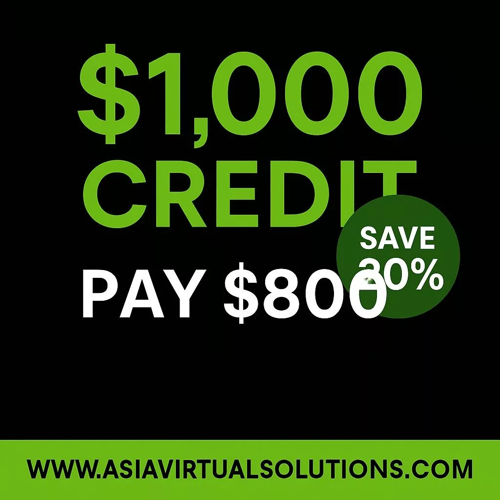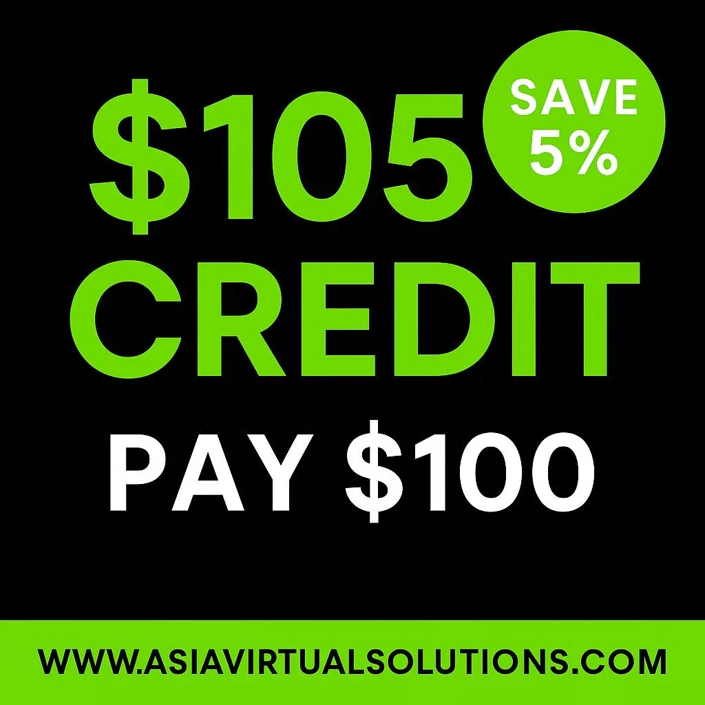 Store Credit gives you extra buying power at Asia Virtual Solutions. Pay once, get more value instantly. You can save up to 30% on any service we offer. Your credit never expires, so you can use it anytime you need. It’s fast, safe, and works for all our products.